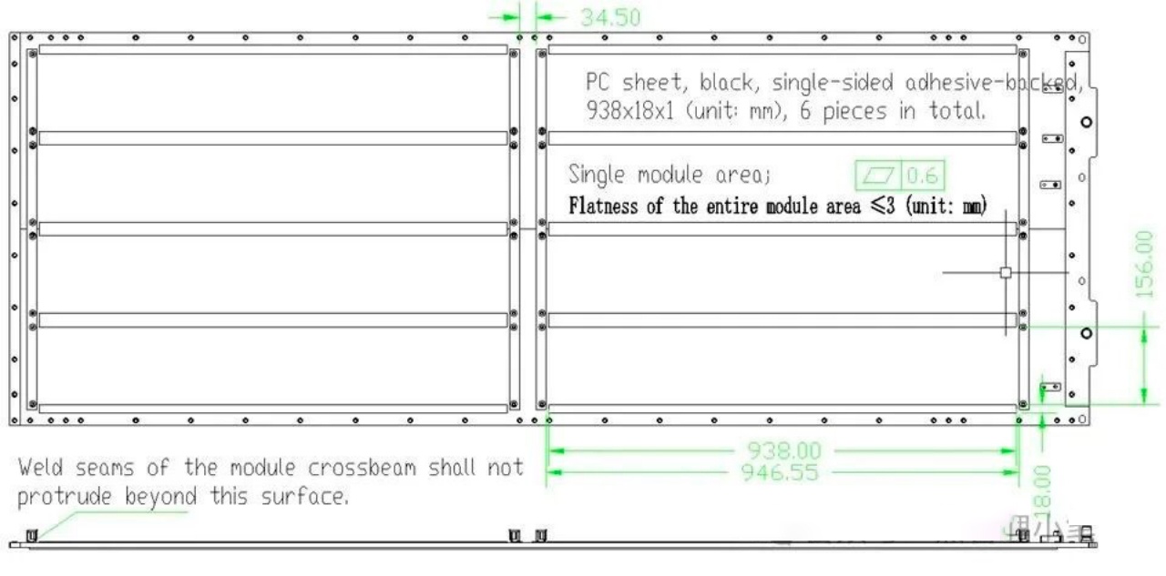 The general design of 740-810mm width, 2180-2200mm length, 10-41mm height of the liquid cooled plate specifications, is the "module size guide" design results. Take 104 series 314Ah cell module as an example, the length of conventional square cell is about 200mm, the total length of 104 series cell lateral arrangement is about 2100-2150mm, the length of liquid cooling plate is designed to cover the redundant space at both ends of the module, to ensure that the edge cell can also evenly dissipate heat; The width of 740 -- 810mm matches the transverse width of the module to ensure the comprehensive fit between the liquid cooling plate and the cell module; The height of 10mm is the optimal thickness of the profile process -- it can not only reserve enough flow channel space (general flow channel diameter 5-8mm), but also ensure the structural strength of the liquid cooled plate, avoid deformation in installation and use. Usually if the integrated frame design, can consider the cold plate integrated, such a height of 41mm;